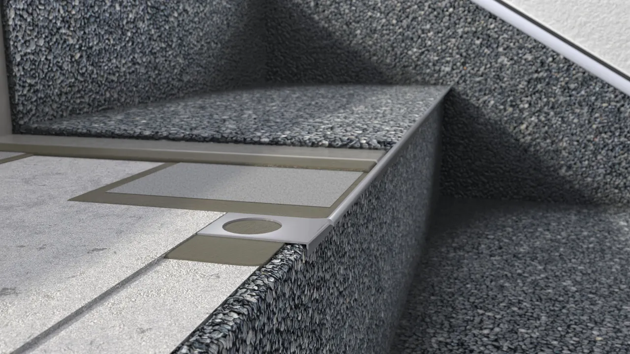 systemowe profile wykańczające krawędzie stopnic i policzków w technologii okładziny żywicznej kamienny dywan