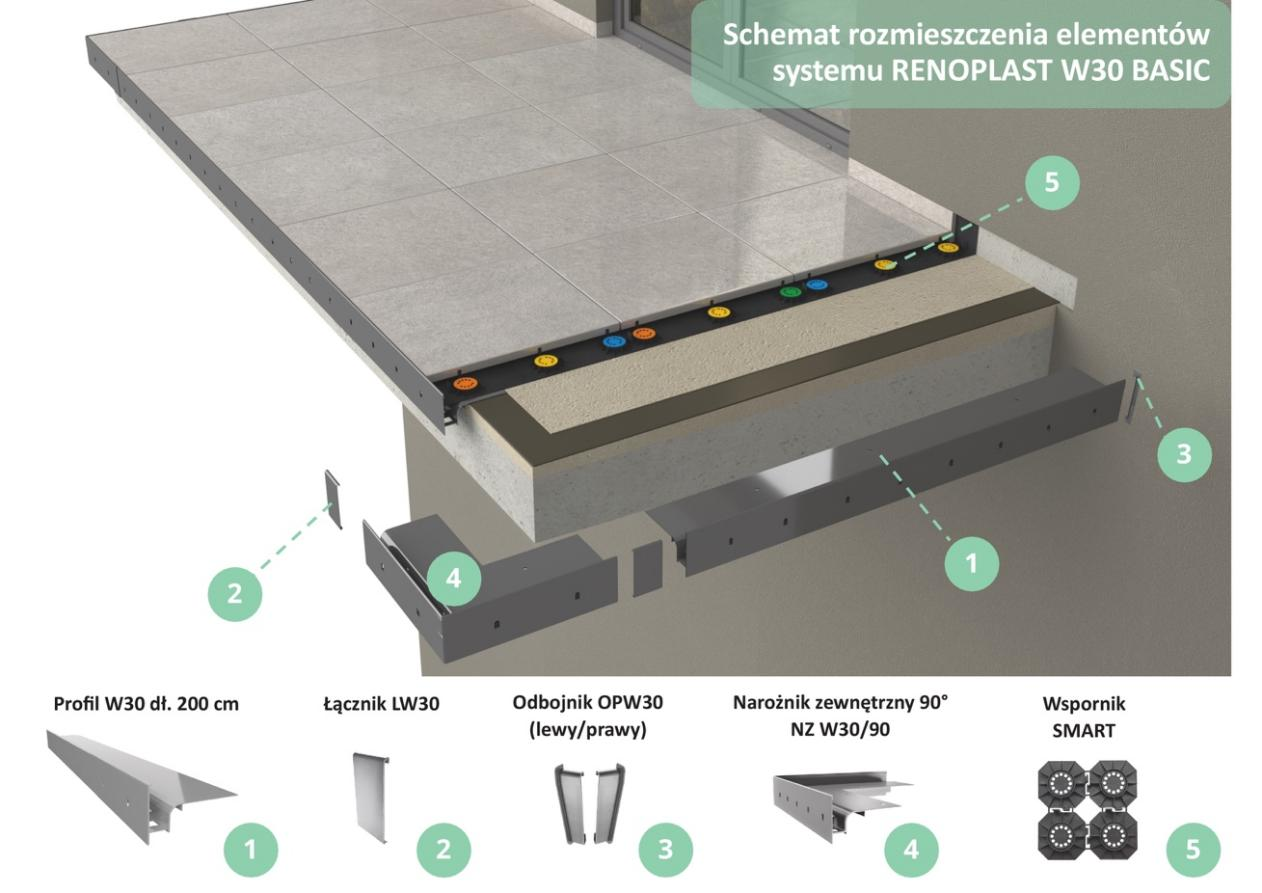 1. Taras lub balkon wykonany w technologii z posadzką ceramiczną układaną z płytek ceramicznych na zaprawie klejowej: