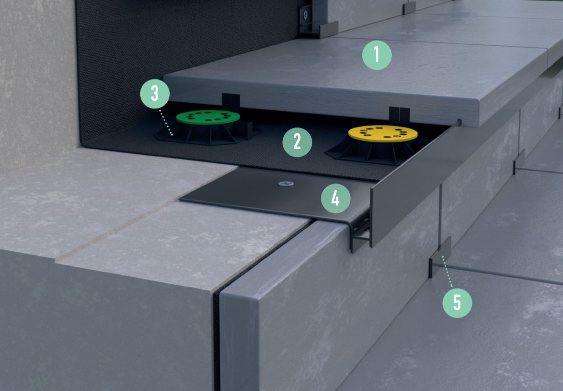 1) Elementy składowe systemu schodów w układzie wentylowanym RENOPLAST SW: