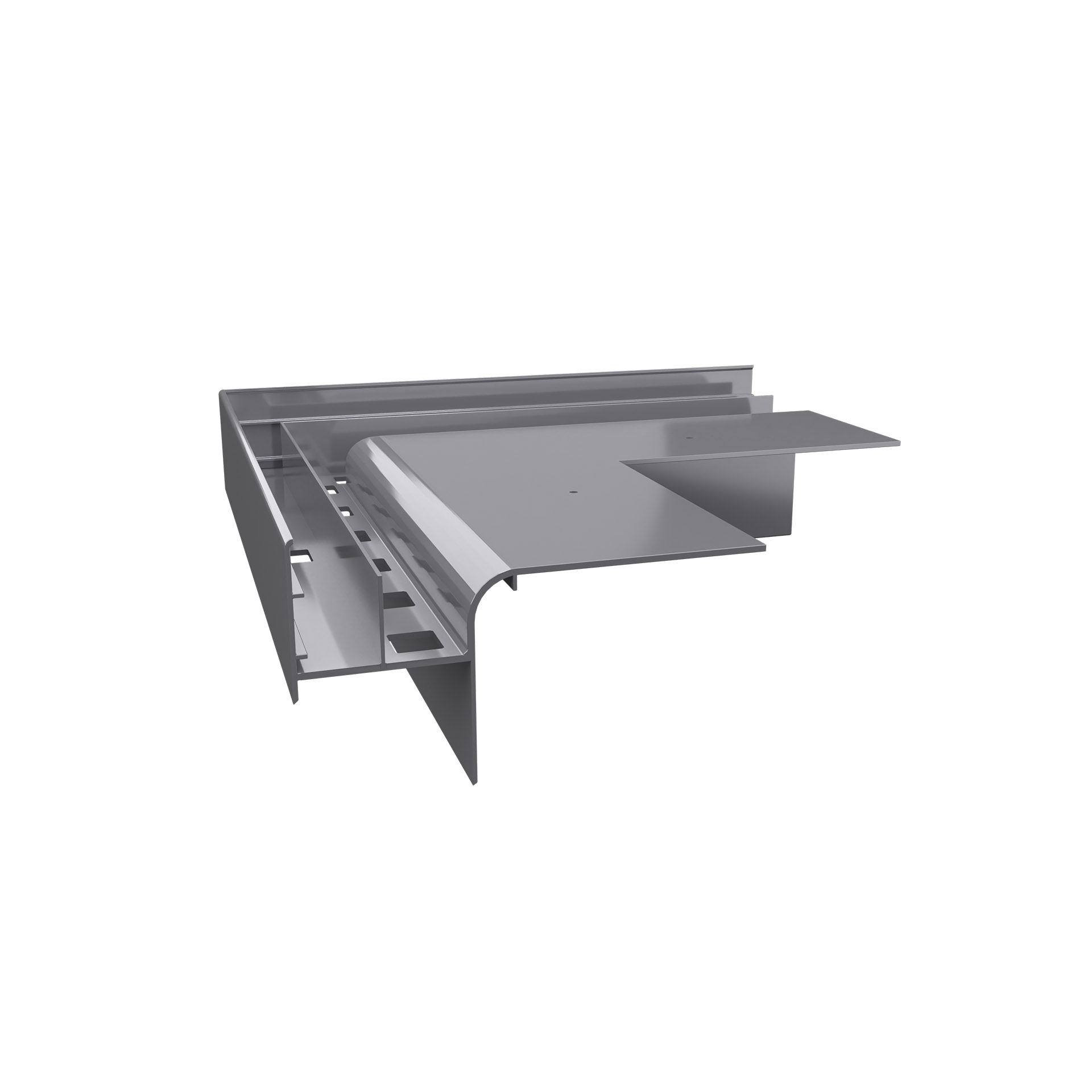- innowacyjna budowa profilu umożliwia sztywny montaż czołowych płyt ceramicznych stanowiących wykończenie czoła tarasu oraz podparcie płyt posadzkowych wzdłuż okapu