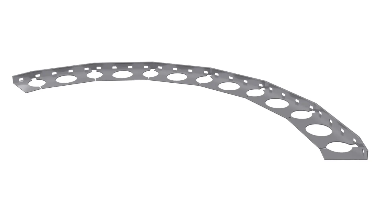 fabrycznie przygotowany profil do wykańczania krawędzi schodów w kształcie łuku o promieniu nie mniejszym niż 100 cm, w technologii okładziny żywicznej kamienny dywan. Wysokość 10 mm.